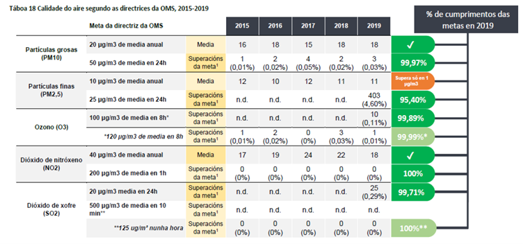 Below, the compliance with air quality according to WHO guidelines is shown: